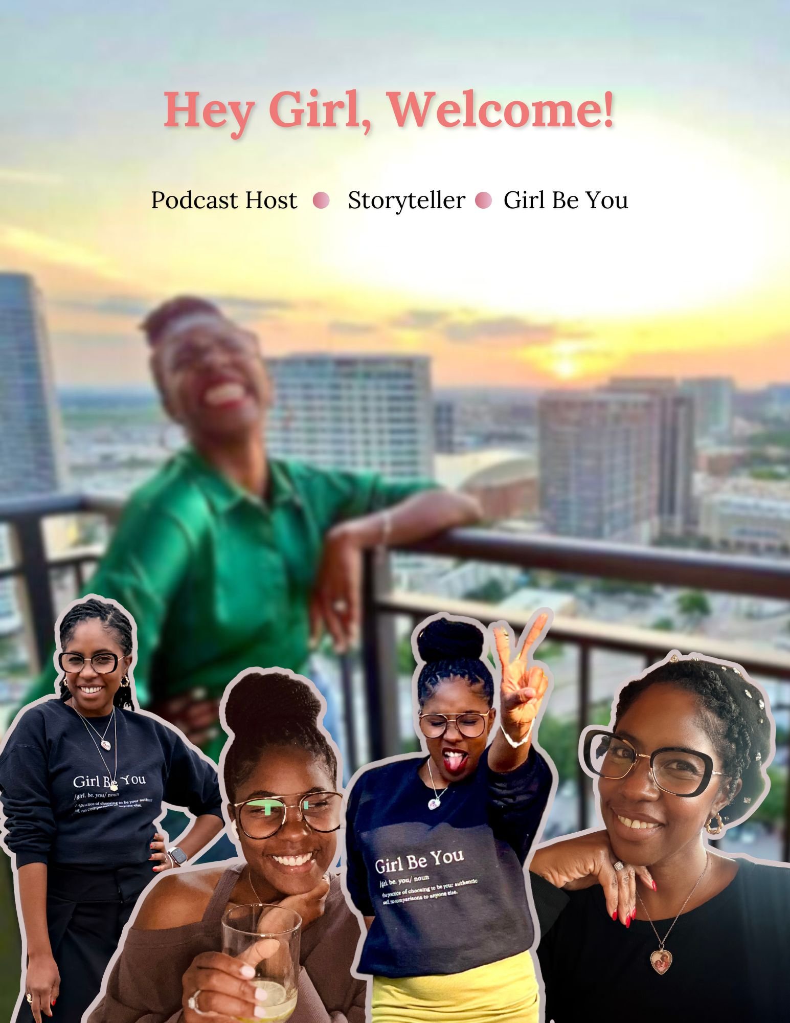 I’m JeeJee, podcast host, storyteller, writer and the woman behind Girl Be You. I grew up as a Pastor’s Kid, oldest of four carrying he weight of what others told me to be. It has taken a long time to realize the truest thing I could ever do is simply BE ME!