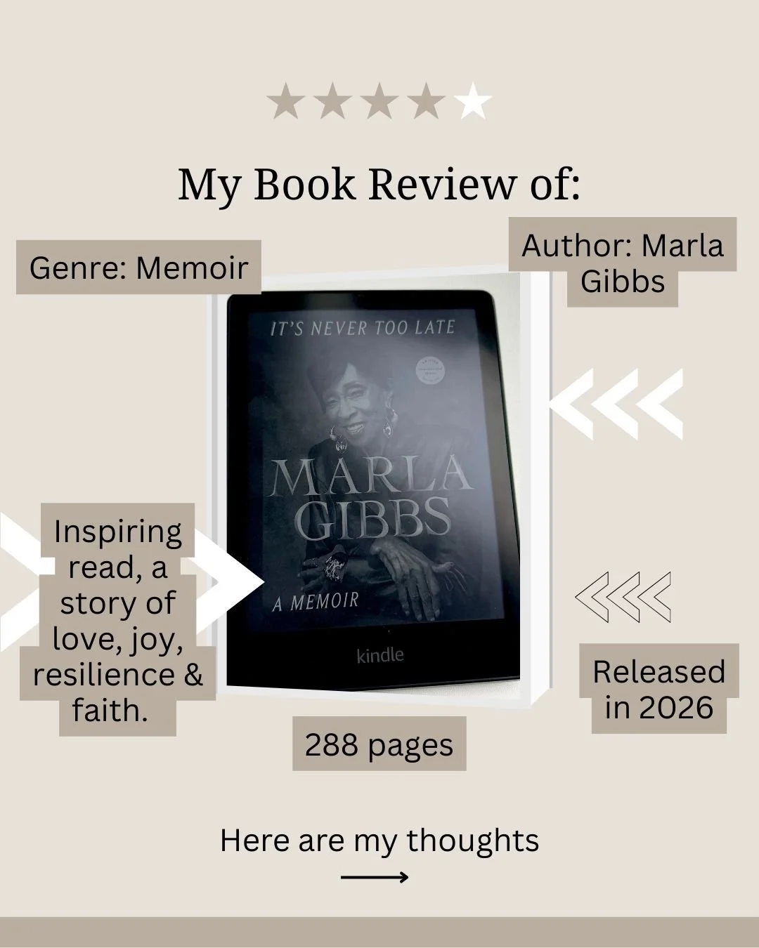 After reading this book, I felt a profound sense of fulfillment and inspiration. I was motivated to pursue my passions and continue looking out for others. I was reminded that life’s circumstances may not always be easy, but they don’t define us. Instead, we can embrace them and create our own paths. I have always admired Ms. Marla Gibbs, and after reading this book, I love and respect her even more.